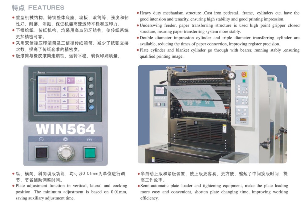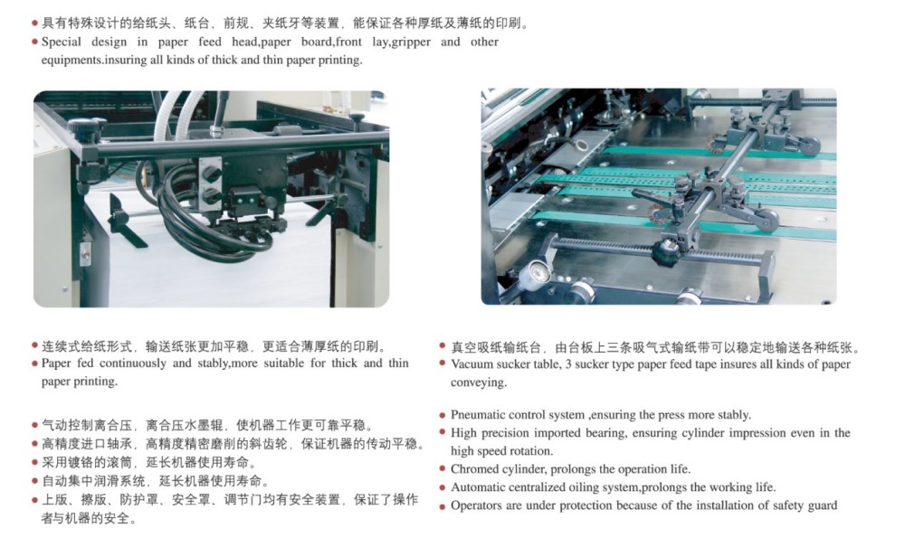 Söhbət A2 Dördrəngli Qısamüddətli Çap Ofset Çap Maşına gəldikdə, onu etibarlı edən yüksək məhsuldar modullarla qurulub - qısamüddətli çap işləri üçün mükəmməldir. Bu modullara yüksək dəqiqlikli rulonlar və dişli çarxlar, möhkəm kağız qidalandırma mexanizmi, dəqiq kağız qeydiyyatı sistemi və sabit mürəkkəb təchizatı sistemi daxildir. O, bazarın yüksək keyfiyyətli, səmərəli və sərfəli, xüsusən də qısamüddətli işlər üçün kəsilmiş rəngli çap tələblərinə cavab verir. O, 0,04 mm nazik kağızdan 0,4 mm qalınlıqdakı kartona qədər geniş çeşidli kağız qalınlıqlarını idarə edə bilir. Və onun sensor ekran nəzarəti və intuitiv proqramlaşdırma interfeysi ilə siz asanlıqla bütün parametrlərə və çap parametrlərinə ağıllı düzəlişlər edə bilərsiniz.