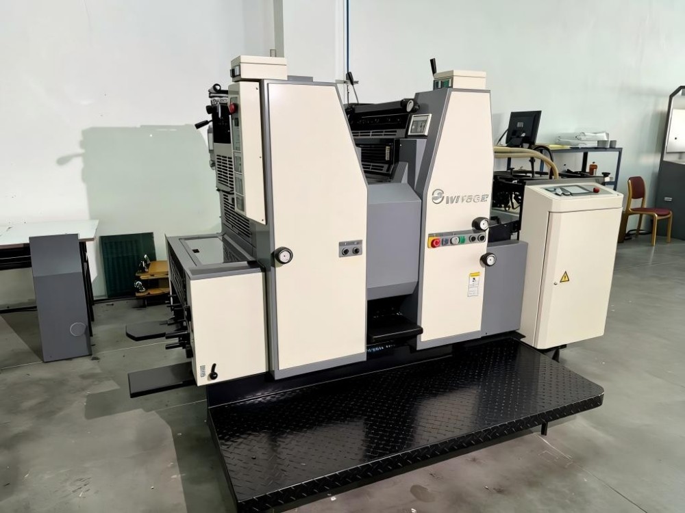 Bu A2 İki Rəngli Tez Boşqab Dəyişən Çap Ofset Çap Maşını A2 böyük ölçülü kağızı dəstəkləyir. Bu, iki rəngli kommersiya ofset modelidir. Ağır yük daşıyan bir quruluşa malikdir. Bu, yelləncək qolu qidalanma dizaynından istifadə edir. İkiqat yaylı tutacaqlar kağızın rəvan hərəkət etməsinə kömək edir. Müxtəlif qalınlıqdakı kağızlara sürətli çap edir. Ağıllı sensor ekran daxildir. Operatorlar maşını rahatlıqla idarə edə bilirlər.